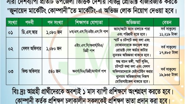 জুনায়েদ মার্কেটিং কম্পানীতে নিয়োগ বিজ্ঞপ্তি