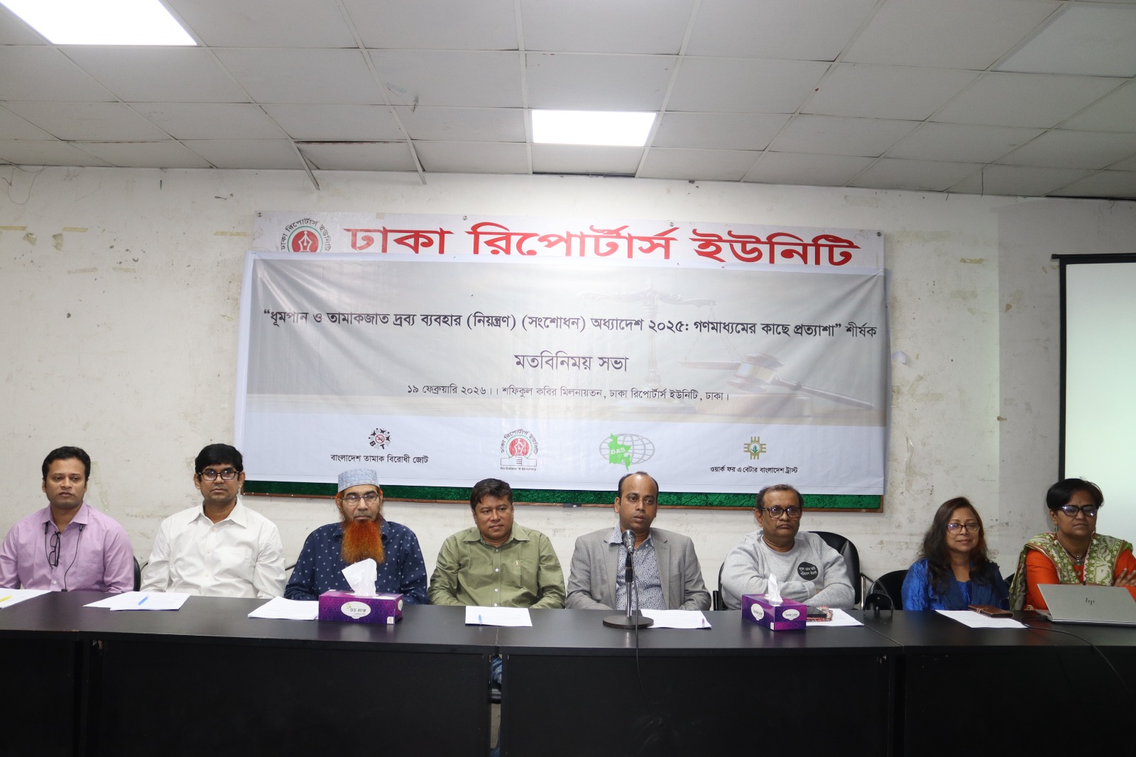 তামাকের বহুমাত্রিক ক্ষতি থেকে জনস্বাস্থ্য, পরিবেশ ও অর্থনৈতিক সুরক্ষায় সরকার ‘ধূমপান ও তামাকজাত দ্রব্য ব্যবহার (নিয়ন্ত্রণ) (সংশোধন) অধ্যাদেশ, ২০২৫’ অনুমোদন করেছেন। এই অধ্যাদেশটি শিশু, কিশোর, নারীসহ সর্বস্তরের মানুষকে অসংক্রামক রোগ ও তামাকের ক্ষতিকর প্রভাব থেকে রক্ষায় অত্যন্ত সময়োপযোগী ও গুরুত্বপূর্ণ একটি পদক্ষেপ। সার্বিক জনস্বাস্থ্য উন্নয়নে দৃশ্যমান অগ্রগতির জন্য তামাক নিয়ন্ত্রণ অধ্যাদেশটির বাস্তবায়নে প্রয়োজনীয় পদক্ষেপ জরুরী। আজ ১৯ ফেব্রুয়ারি ২০২৬, সকাল ১১.০০ টায় ঢাকা রিপোর্টার্স ইউনিটি (ডিআরইউ) এর “শফিকুল কবির” মিলনায়তনে “ধূমপান ও তামাকজাত দ্রব্য ব্যবহার (নিয়ন্ত্রণ) (সংশোধন) অধ্যাদেশ ২০২৫: গণমাধ্যমের কাছে প্রত্যাশা” শীর্ষক মতবিনিময় সভায় বক্তারা এই অভিমত ব্যক্ত করেন।